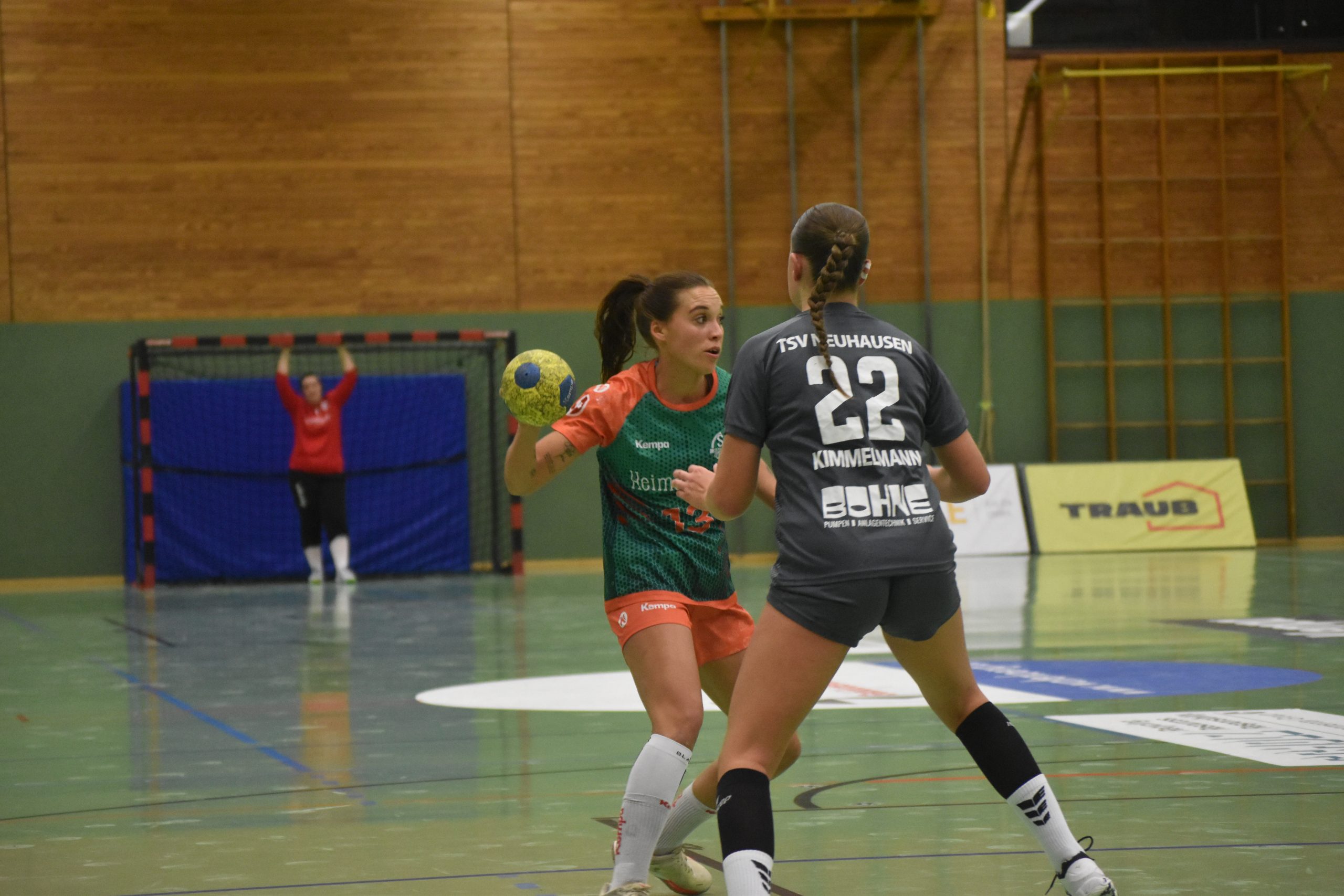 In den ersten beiden Heimspielen der SG2H bekamen die Fans jeweils ein Torspektakel geboten, mit insgesamt 159 Treffern. Wer wieder auf ein torreiches Spiel gehofft hatte, sah sich getäuscht. In den ersten 18 Minuten der Partie fielen lediglich sechs Tore. Das Team vom Kappelberg und Kochertal ging durch Clara Jörg zunächst mit 1:0 in Führung. Neuhausen konnte die Partie aber drehen und nach 18 Minuten mit 4:2 in Führung gehen. Bis zur 22. Minute baute der Aufsteiger die Führung sogar auf 6:2 aus.