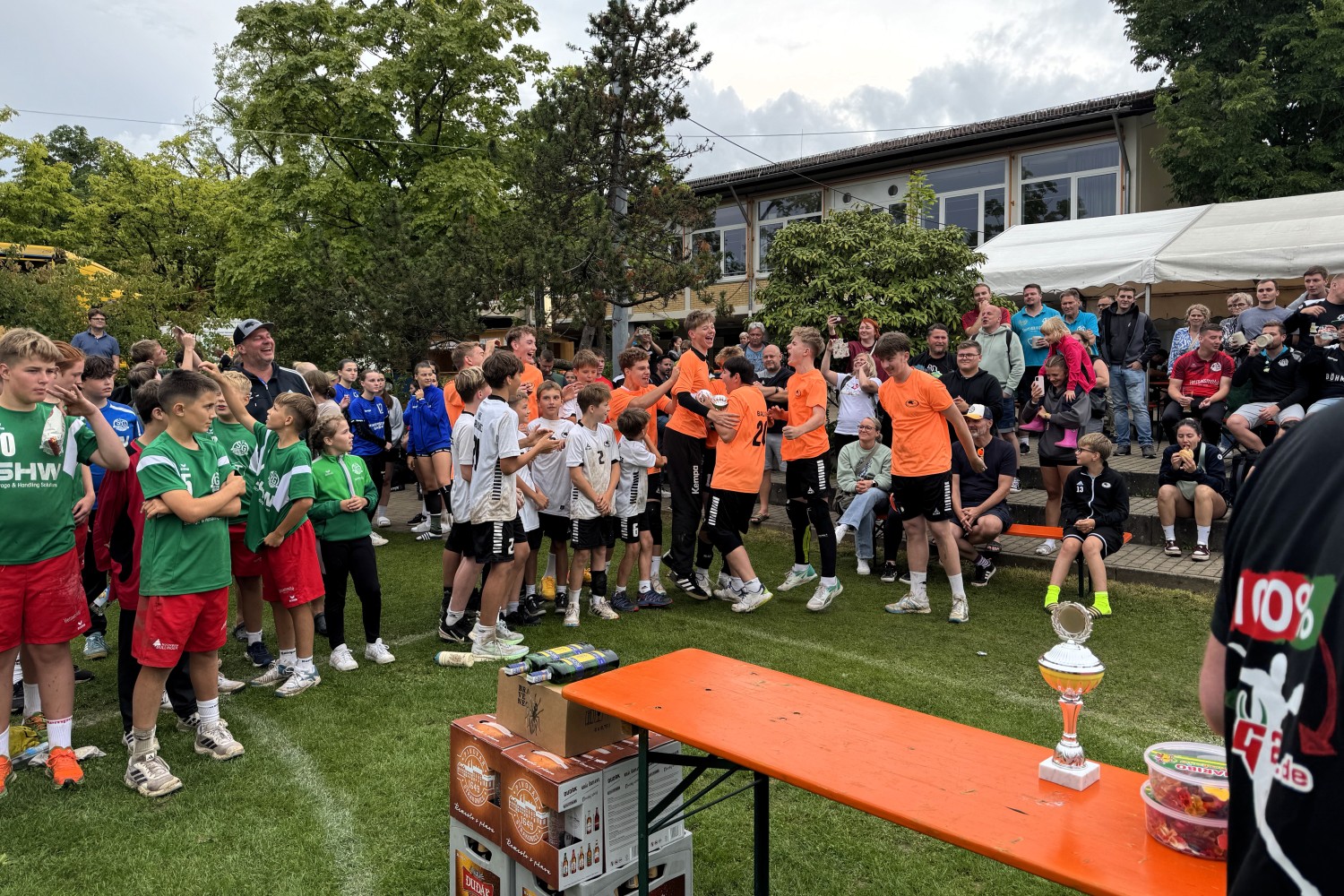 Trotz zwei weiterer Regenunterbrechungen herrschte auf und neben den Feldern durchgehend gute Laune und sportlicher Ehrgeiz. Die Teams machten das Beste aus den schwierigen Bedingungen und lieferten sich packende Duelle – nicht selten mussten die Finalspiele im Siebenmeterwerfen entschieden werden.