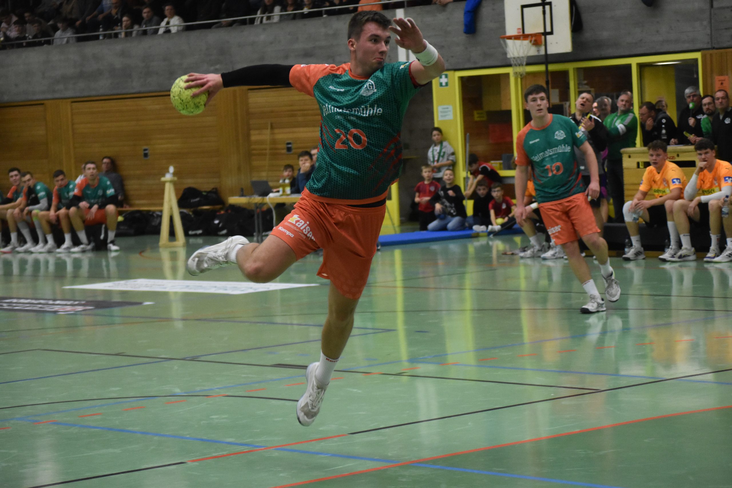 Im weiteren Verlauf der zweiten Halbzeit ließ die SG2H dann überhaupt nichts anbrennen und unterstrich ihre Überlegenheit deutlich. Gut sieben Minuten vor dem Ende führte das Team vom Kappelberg und Kochertal mit 13 Toren (34:21). Der 36. Treffer in der 56. Minute sollte schließlich ein Besonderer werden, Moritz Harsch konnte sich erstmals im Trikot der ersten Mannschaft in die Torschützenliste eintragen. „Es war ein überragendes Gefühl, als von der Tribüne der große Jubel aufbrandete. Der Torwart kam raus und ich dachte mir nur: Lupfen macht jetzt am meisten Sinn. Ich hab dann schnell gesehen, dass er reingeht und mich natürlich sehr darüber gefreut.“ Drei Tore konnte die SG2H insgesamt noch erzielen, Jonas Fürst setzte dabei den Schlusspunkt zum 39:25. Ein ganz kleines Raunen ging am Ende noch durch die Talsporthalle, als der 40. Treffer um Haaresbreite verpasst wurde. Das wäre noch das i-Tüpfelchen in diesem ansonsten sehr starken Spiel gewesen. „Es war ein absolut verdienter Sieg, bis auf wenige Situationen haben wir es gut gelöst“, so Gerd Mühlberger.