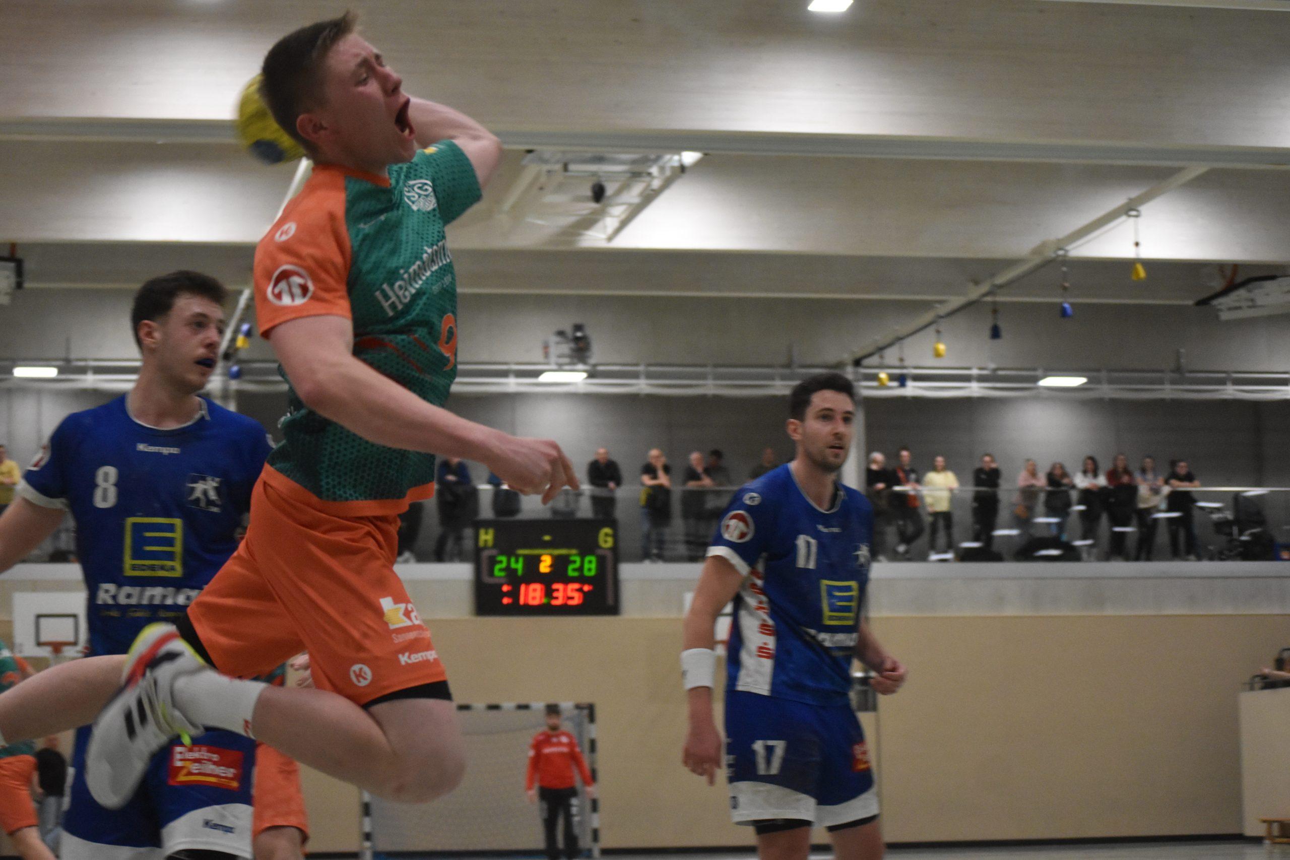 Die Gastgeber erwischten den etwas besseren Start und führten nach sechs Minuten mit 4:2. Doch danach waren es die SG2H-Herren, die den Ton angaben. Es folgten gleich sechs Treffer in Serie und aus dem Rückstand wurde ein Vier-Tore-Vorsprung (8:4/12. Minute). Erfolgreich waren Jonas Fürst, zweimal Achim Eiberger, Yannik Haas, Maximilian Funk und Lukas Fürst. Was zu diesem Zeitpunkt natürlich keiner wusste: Die SG2H sollte die Führung in dieser Partie nun nicht mehr abgeben. Bis zur 17. Minute konnte sich das Team auf fünf Tore absetzen, es war die deutlichste Führung in der ersten Halbzeit (13:8).
