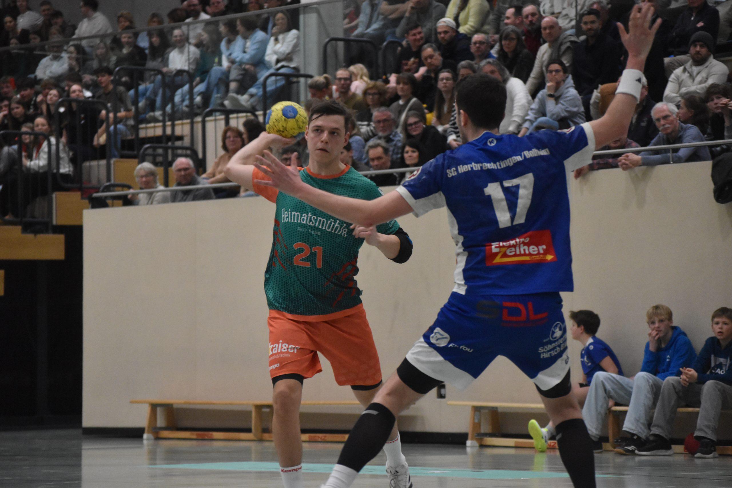 Die Hausherren gaben sich aber niemals auf und konnten den Rückstand im Laufe der ersten Halbzeit wieder deutlich verkürzen. In der 26. Minute stand es nur noch 16:15 für das Team vom Kappelberg und Kochertal. Mit einem Vorsprung von zwei Toren sollte es schließlich in die Pause gehen. In Unterzahl erzielte Yannik Haas zehn Sekunden vor Ertönen der Sirene den letzten Treffer im ersten Durchgang zum 21:19. „Es war eine sehr intensive erste Halbzeit, in der wir nur recht wenige technische Fehler gemacht haben. Aufgrund des Spielstils der SG Herbrechtingen-Bolheim mussten die Jungs aber sehr viel laufen und das kostet so viele Körner. Trotzdem war es eine richtig gute erste Halbzeit“, blickte Trainer Gerd Mühlberger auf die ersten 30 Minuten der Partie zurück.