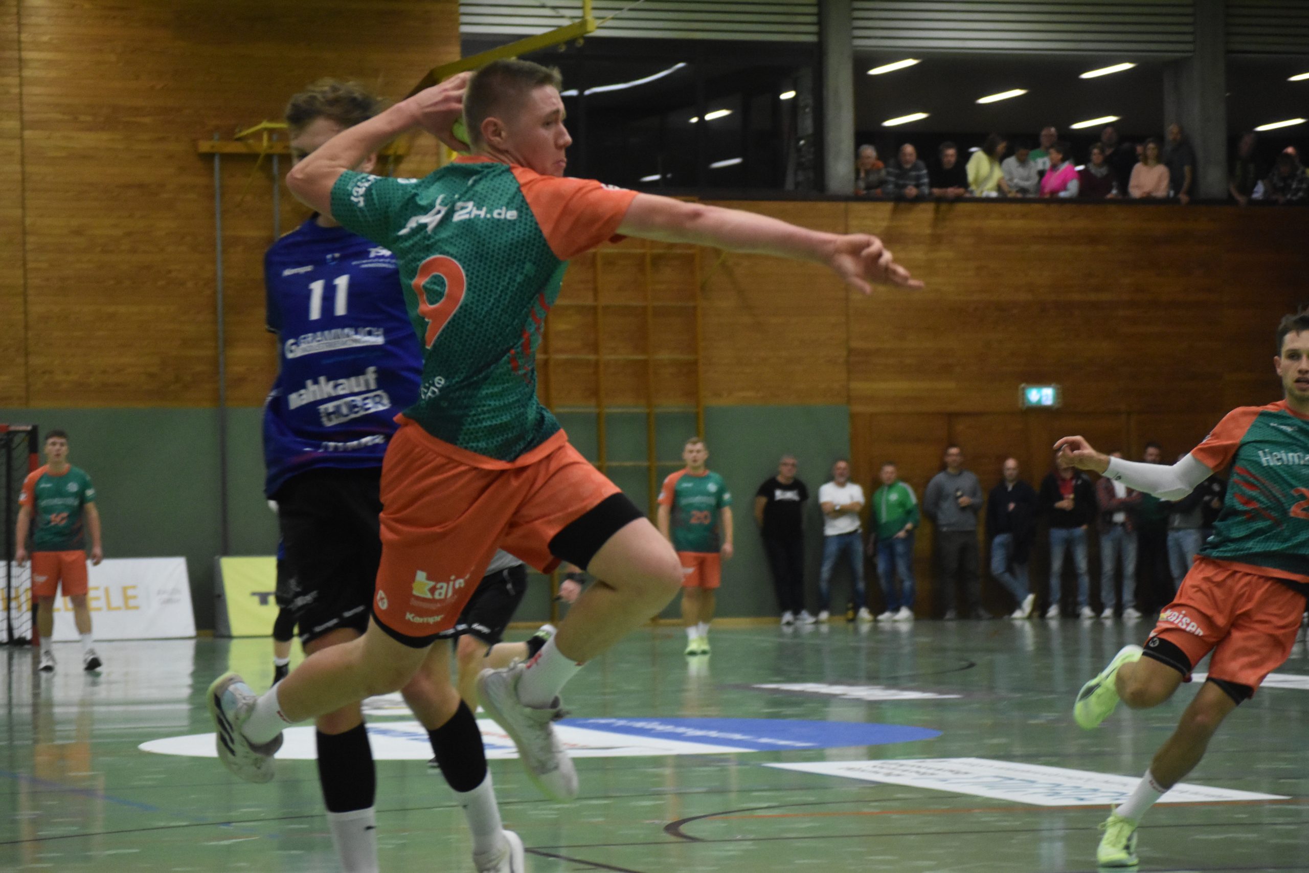 Bereits früh in der Partie wurden die Weichen auf Sieg gestellt. Ein einziges Mal lag Denkendorf in Führung – und das war beim 1:0 in der zweiten Minute durch Lucas Kaiser. Im Anschluss kam der SG2H-Express ins Rollen. Nach sechseinhalb Minuten konnte sich das Team von Gerd Mühlberger und Jan Eglauer eine Vier-Tore-Führung erspielen (6:2). Denkendorfs Trainer Moritz Müller war bereits früh zu einer Auszeit gezwungen. Doch es war die SG2H, die weiterhin Druck ohne Ende aufbaute. Während in Deizisau noch die Chancenverwertung das große Manko war, zeigte man gegen Denkendorf eindrucksvoll das genaue Gegenteil. So wuchs die Führung schnell weiter an und bereits nach knapp 20 Minuten hatte die SG2H 16 Tore (16:9) erzielt – so viele Treffer wie in Deizisau im gesamten Spiel. In den letzten zehn Minuten vor der Pause konnte Denkendorf etwas besser dagegenhalten, sodass der Rückstand bei acht Toren lag. Den letzten Treffer der SG2H erzielte der überragende Louis Fürst, der nach der Partie zum Spieler des Spiels gekürt wurde. Zur Halbzeit stand es 23:15.