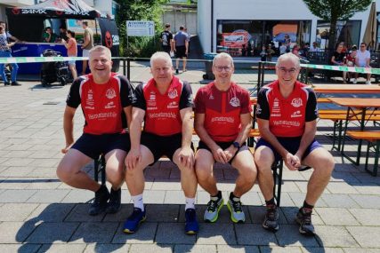 Am Sonntag war die SG2H mit einer stattlichen Fußgruppe beim Jubiläumsumzug dabei. Etliche Zuschauer durften ihre Treffsicherheit beim Torwandwerfen beweisen. Für das leibliche Wohl sorgten die grün/roten Handballer mit leckeren Gerichten vom Grill und aus der Fritteuse sowie frisch gezapftem Bier als kühlen Durstlöscher.